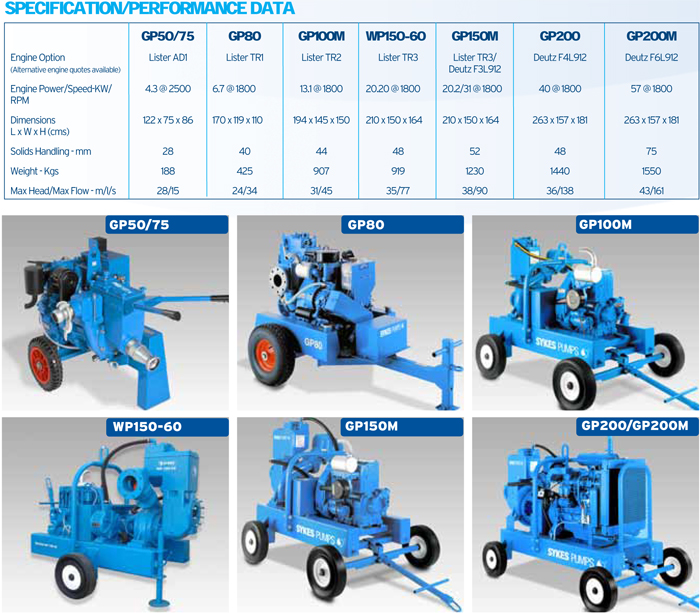 The GP, WP, and MX diesel powered pump ranges from Sykes Pumps offer General Purpose, Well Pointing, and Booster Pump specialised solutions to customers who demand quality, extended life and value.
